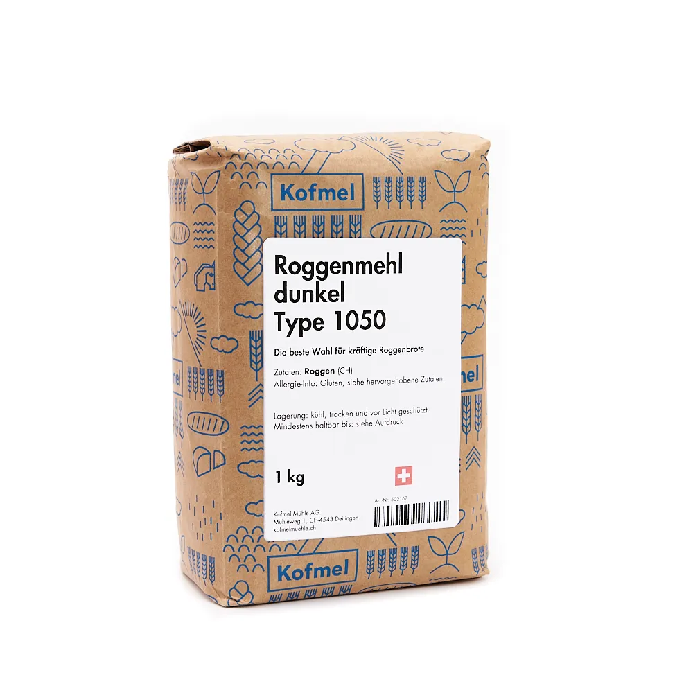 Dunkles Roggenmehl aus Schweizer Roggen für beste Backwaren mit viel Roggenaroma. Dunkel ausgemahlenes Mehl aus Roggen mit weniger Stärke als Weizen, kann aber mehr Wasser aufnehmen, sodass Roggenbrote länger frisch bleiben. Dunkles Roggenmehl enthält viele Mineralstoffe und Ballaststoffe und enthält dank dem hohen Anteil an Randschichten die volle Geschmacksnote von Roggen. Ausmahlgrad 79 bis 83 Prozent. Roggenmehl dunkel Type 1050 eignet sich für herzhaftes Landbrot, Sauerteigbrot, Walliser-Roggenbrot und zum Mischen mit anderen Mehlen wie Weizenmehl oder Dinkelmehl.